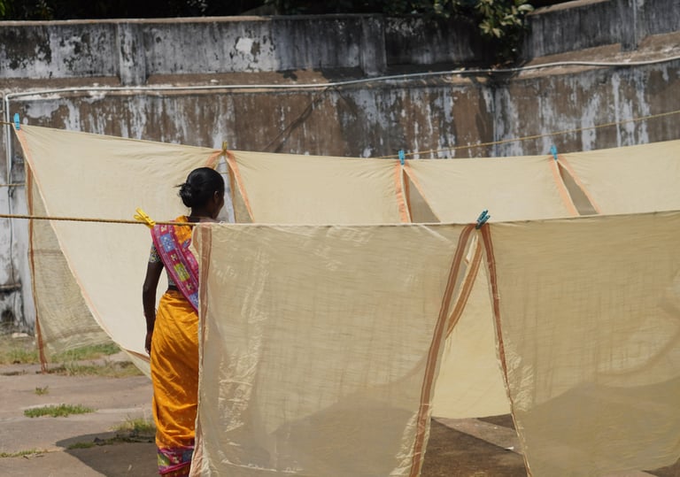 The fabric is dried under sunlight one last time, setting all natural colors firmly.
